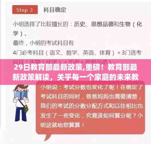 今天我要和大家分享的是关于教育部本月29日发布的最新教育政策的重要解读📘,这项政策不仅关乎我们每一个家庭的未来教育路径,也影响着我们每位家长、学生和教育工作者的日常生活和成长,让我们共同关注并了解这一政策。