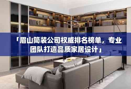 随着现代生活节奏的加快,人们对于居住环境的要求越来越高,在追求美观的同时,也更加注重舒适性和实用性,在装修过程中选择合适的装修公司变得尤为重要,本文将为您介绍眉山地区简装公司的排名,帮助您更好地了解当地的市场情况。